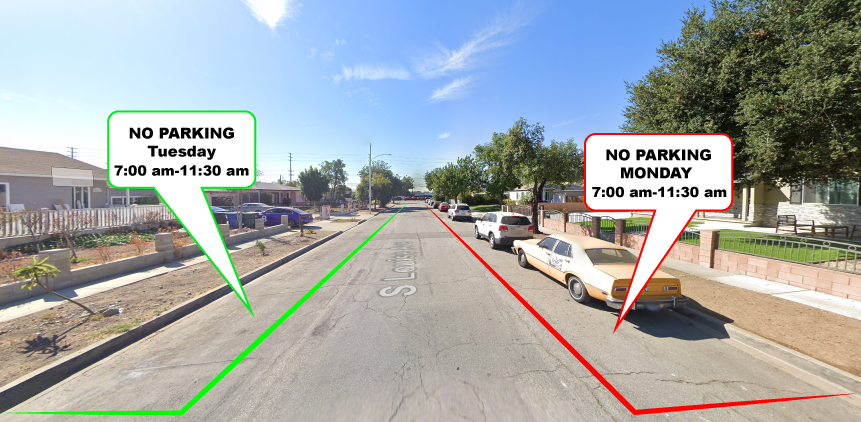 Monday, 7 am - 11:30 am: No parking on the side of the house.