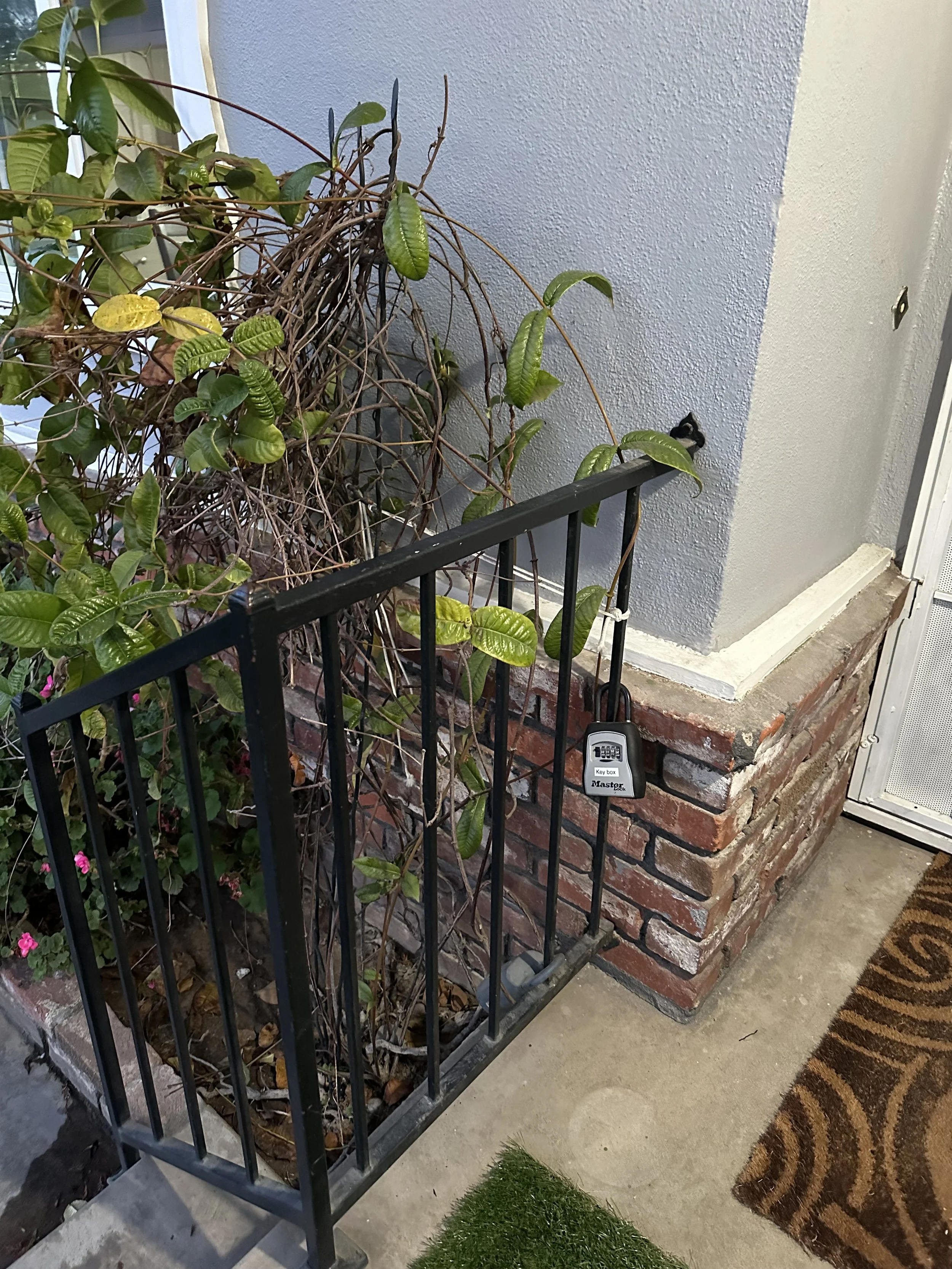📍First, get the key inside the lock box on the front-door porch to unlock the screen door. The lock box code is 5354.